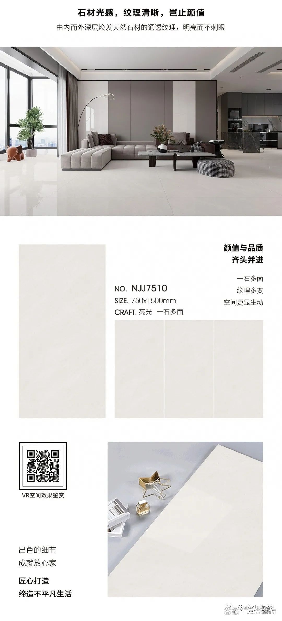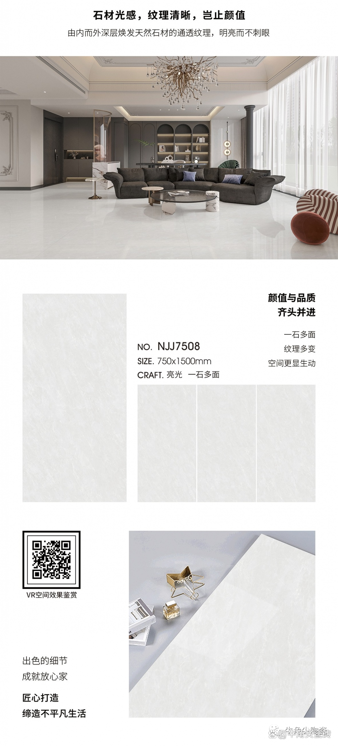 创新工艺,白胚底,产品更加晶莹剔透;耐磨抗折,质感高级,装饰美观大气;立体切割,规格灵活,自主搭配;一尺一寸,尽是美学。花色丰富多样,款式新颖齐全。艺术与美学的完美融合;以设计创造价值,以工艺打造品牌,以艺术创造生活的质感。